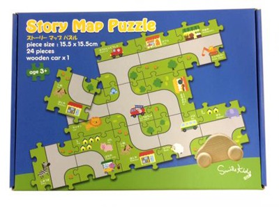 「お店」「働く車」「動物」「1〜10の数字」のグループに分けてパズルをつなげていくこともできます。街ができたら付属の木製の車を走らせて遊びましょう。